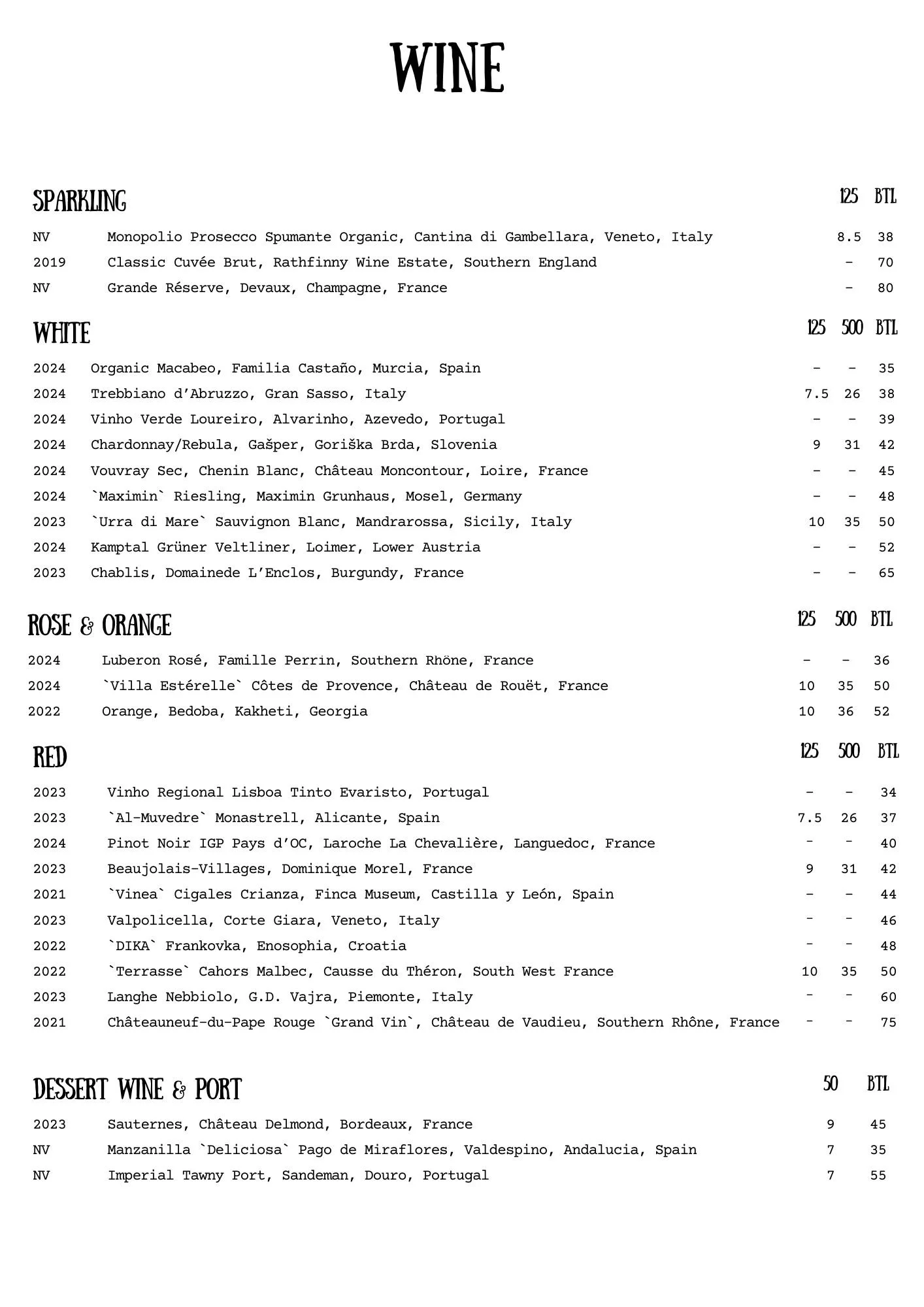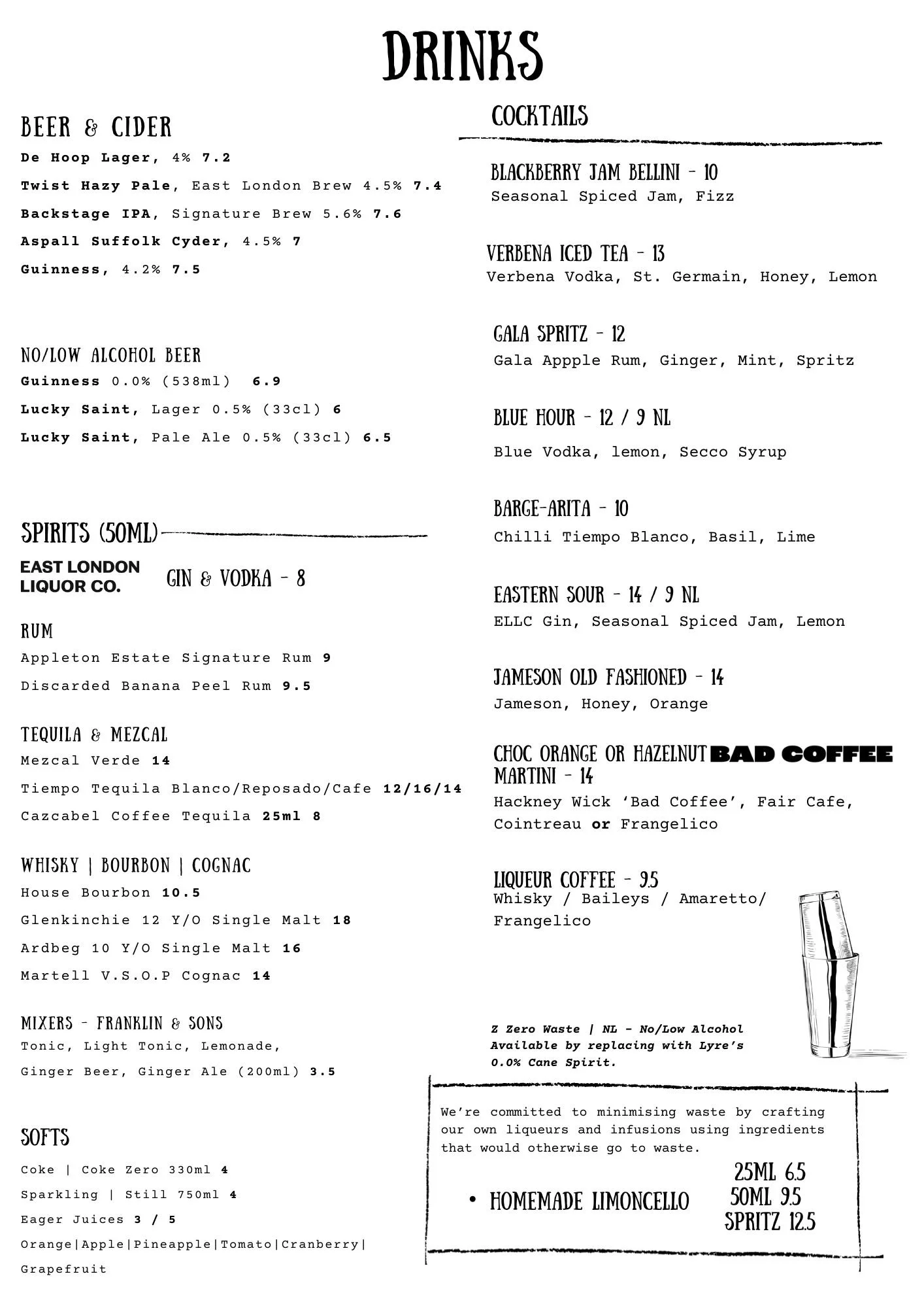 ALL SPIRITS ARE SERVED TO A 50ML AS STANDARD ASK YOUR SERVER IF YOU PREFER A SMALLER MEASURE.