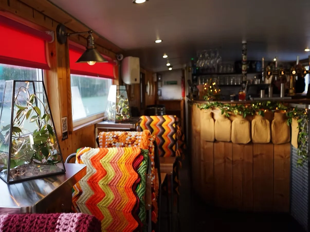 While the main barge focuses on seasonal dining and celebrations around the table, The Milk Float offers a livelier, more informal setting — ideal for groups who want something relaxed but still uniquely Hackney Wick.